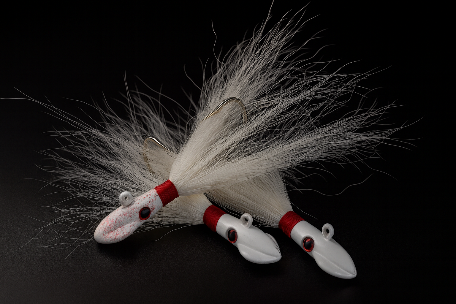 Meet the Cobia Killer Squid Shaker, a custom hand-tied squid head bucktail built to tempt big fish that roam blue water. The proven red & white colorway leads the charge, but with custom options available and each jig tied to order, your possibilities are nearly endless.
